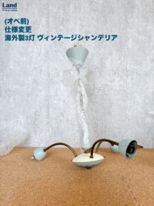 【仕様変更】海外製ヴィンテージ シャンデリア(3灯タイプ)安心・安全なランプにカスタム KARTE#927